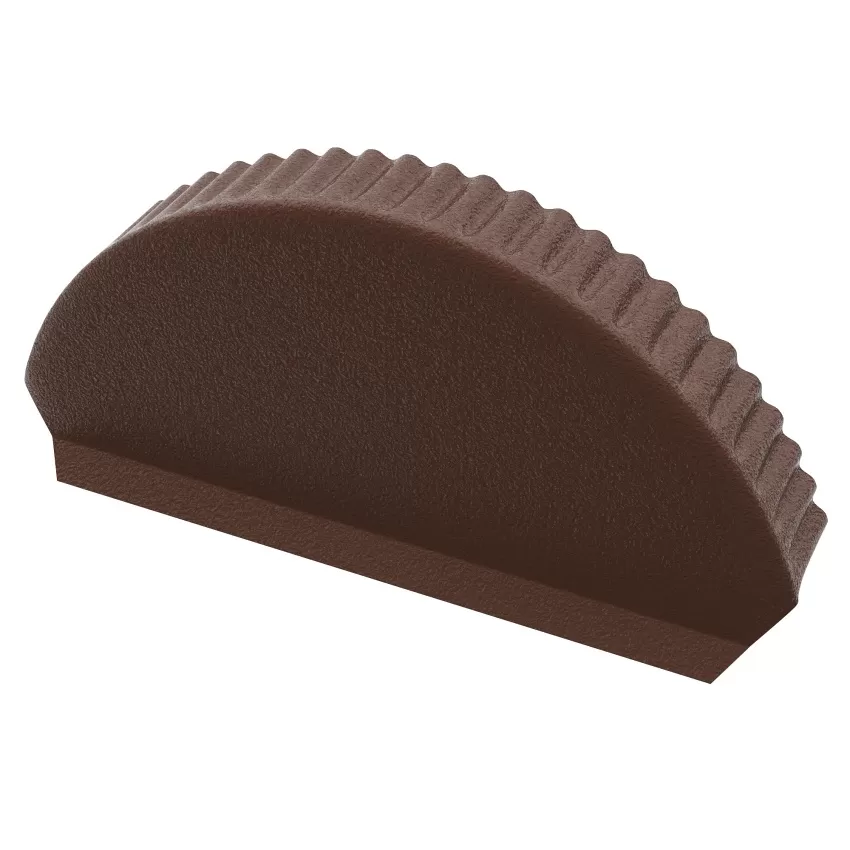 Заглушка торцевая к коньку полукруглому. Данный элемент монтируется на торцы полукруглого конька. Помимо эстетической функции, защищает подкровельное пространство от возможного попадания грязи и влаги.