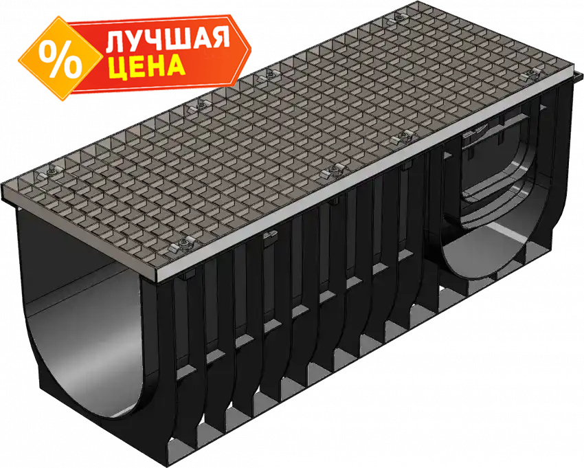 Комплект Gidrolica Light: лоток водоотводный ЛВ-30.38.39,6 - пластиковый c решеткой РВ -30.37.100 ячеистой стальной оцинкованной, кл. А15 (0830А)