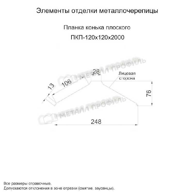 Планка конька плоского 120х120х2000 (PURMAN-20-Galmei-0.5)