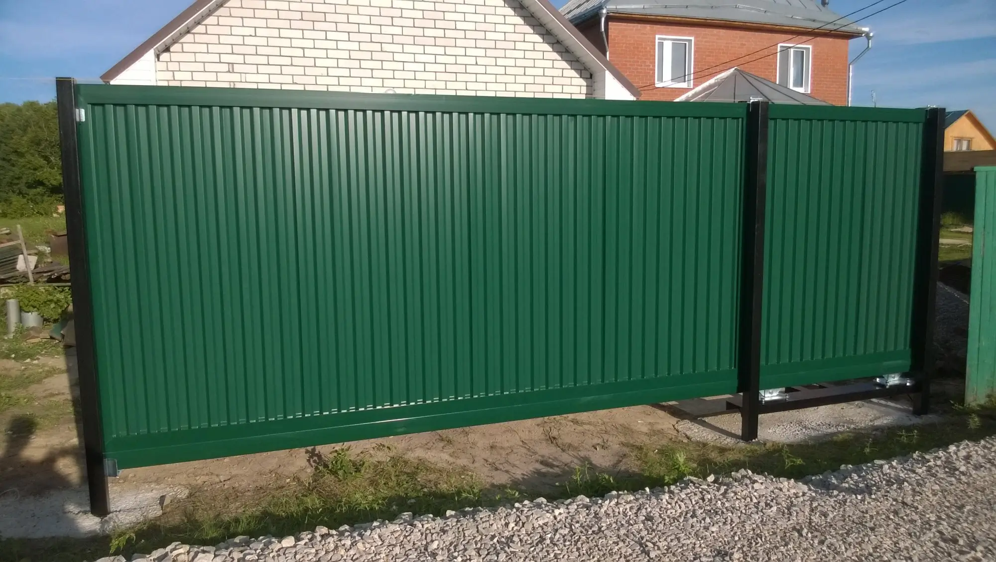 Цвет профлиста - зеленый мох (RAL 6005), который придает зданию эстетичный и современный вид.