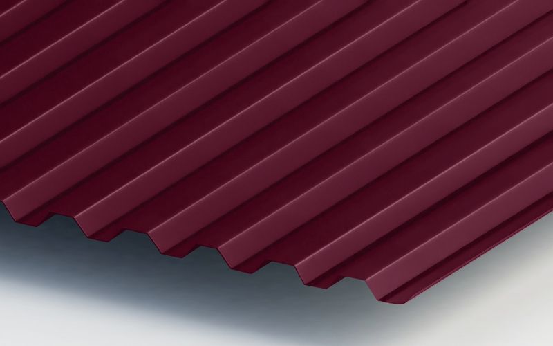 Профнастил ЮджинСтрой С21 с покрытием из полиэстера толщиной 0,5 мм в цвете Ral 3005 красное вино - это надежный и стильный материал для кровли и фасадов.