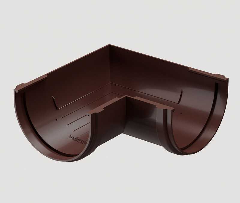 Угловые элементы устанавливаются как на внешних, так и на внутренних углах кровли и предназначены для соединения желобов.