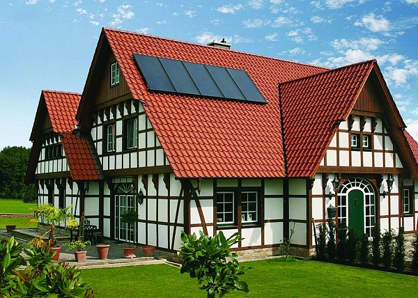 Натуральный красный цвет черепицы придаёт крыше яркий и выразительный вид. Этот цвет не только красив, но и практичен, так как он не выгорает на солнце и сохраняет свою насыщенность на протяжении всего срока службы.